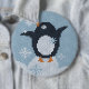 Gezwirnter, kleiner niedlicher Pinguin freut sich über fallende Schneeflocken