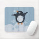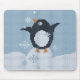 Gezwirnter, kleiner niedlicher Pinguin freut sich über fallende Schneeflocken