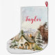 Dieser wunderschöne und festliche Aquarell-Strumpf kann mit einem Namen personalisiert werden. Es verfügt über eine rustikale Hütte, umgeben von Schnee, Bergen und Bäumen. Es gibt bezaubernde Tiere wie Rentiere, Hasen und Eulen, aber auch Pilze, Eicheln und Blattwerk. Das ist perfekt zu Weihnachten.