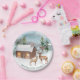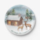 Dieses Design zeigt eine Aquarellbilder der Winterwaldlandszene - die Tannen, die Blockhütte, zwei Hirsche. Sie können Text nach Ihren Wünschen anpassen