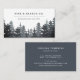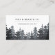 Rustikales elegantes Visitenkartendesign mit einem Wald aus Kiefernbäumen in dustigen Blau- und Holzkohlegrau, mit zwei Textzeilen für Ihren Firmennamen und/oder Ihren Namen und Ihre Geschäftsbeschreibung, in einer schicken Kombination aus Block und kursiver Schrift. Fügen Sie Ihre vollständigen Kontaktdaten auf der Rückseite in Weiß auf staubblau hinzu.