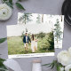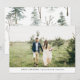 Diese stilvollen und einfachen Weihnachtskarten verfügen über Ihr eigenes Foto. Die Rückseite der Karte ist mit einem trendigen, winterfarbenen Wassermuster aus grünen Kiefern, nackten Waldzweigen und viel Schnee dekoriert.