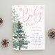 Ein kleines Mädchen ist unterwegs und es ist kalt draußen! Mit dieser individuellen Einladung werfen Sie eine wunderbare Baby-Dusche im Winter. Das Design besticht durch einen modernen Kalligraphie-Script-Schriftart, rosa Schneeflocken und Aquarellwald. Personalisieren Sie diese Einladung einfach mithilfe der Online-Template-Tools. KEINE PINKFOLIE