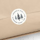 Rustikale, schicke Aufkleber für Ihr Outdoor-, Abenteuer- oder naturorientiertes Geschäft verfügen über ein Trio aus blauen und grauen Pinienbäumen mit zwei individuellen Textfeldern in einem abgerundeten Runddesign.