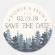 Für das abenteuerliche und Outdoorkraut Paar retten unsere rustikale und winterliche Pinienhochzeit die Dattelaufkleber mit einem kühlen Waldbild, mit einem üppigen Pinienwald in satten Farbtönen von rauchblauem Grau, der in einen Vordergrund von dunkelmarinebasischem Blau schmilzt, der mit Kohle getränkt ist. Siegel Sie Ihre Save the Date Umschläge mit diesen eisigen, schicken Aufklebern, die sich perfekt für Winterhochzeiten im Wald, Wald, Berg oder im Freien eignen.
