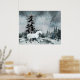 Eine Aquarellmalerei im Winter mit einem weißen Pferd inmitten eines Winterwaldes unter einem Nachthimmel.