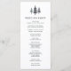 Unser winterliches, rustikales und schicke Hochzeitsprogramm zeigt Ihre Zeremonie Details mit einem Trio von Kiefern in tiefer Blues und Grauen. Auf der Rückseite finden Sie die Mitglieder Ihrer Hochzeitsfeier mit leicht bearbeitbaren Textfeldern. Koordiniert mit unserer Hochzeitskollektion Winterwald. Verwenden Sie die Vorlagenfelder, um Ihre Zeremonie- und Brautparty-Informationen hinzuzufügen, und klicken Sie dann auf "Anpassen", um Elemente bei Bedarf neu zu positionieren. Brauchst du Hilfe? Kontaktieren Sie mich über den Link "Diesen Designer Gefragt" auf dieser Seite.