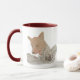 Diese Tasse ist mit einem roten Fuchs in Aquarellen, umgeben von Wintergärten, Beeren und Pinecones, gestaltet. Die Innenseite und der Griff dieser Tasse sind saisonal rot, um den Beeren zu entsprechen, aber Sie können diese Farbe auf der Tafel nach rechts ändern. Original Artwork vom Wilderness Store