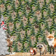 Ein wunderschönes, wasserfarbenes Waldholzpapier mit einem wiederholten Muster von üppigen Tannen- und Fichtenbäumen, die einen Wald bilden, in dem sich Waldtiere im Winter tummeln, die unter dem ersten Schneefall der Saison auf einem braunen Krampf-Hintergrund durchstreifen.