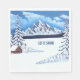 Napkins mit einer schönen Winterlandschaft, inklusive schneebedeckten Bergen, Hütte und Evergreens. Der Text kann personalisiert sein. Original-Kunstwerk von W.B.