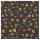 Dieses niedliche Gewebe zeichnet sich durch eine Vielzahl von Herbst- oder Herbstblättern aus, darunter Ahorn, Eiche und mehr auf schwarzem Hintergrund. Die Farben sind rot, orange, gold, braun und grün.