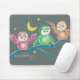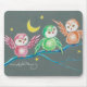 Drei glückliche Freunde--helle, bunte Eulen--sitzen Sie auf einer Niederlassung, unter dem nächtlichen Himmel, mit Mond und Sternen. Eine Eule ist Rosa, ist man Grün und man ist orange. Spaß, nette Kunst, die ein großes Geschenk für Kinder, Kinder am Herzen, Eulenliebhaber und Eulensammler machen würde.