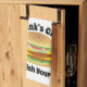 Dieses lustige Handtuch, perfekt für Küche, Bar oder Grill, hat eine Abbildung eines saftigen Cheeseburger und lautet: "(Ihr Name)'s Grill" "We Relish Your Buns". Passen Sie es an für ein personalisiertes Handtuch!