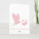 Pregnancy announcement card with silhouette of flying stork in soft pink.