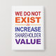 Beginnen Sie eine Unterhaltung mit einer "We Do not Exist to Increase Shareholder Value"-Aktivistin auf einem bunten Knopf. Bilder Copyright © Sandy Long, alle Rechte vorbehalten. Dieses Design ist auf anderen lustigen Gegenständen in meinem Art Activism Store. Tragen Sie stolz Ihre Protestkunst und sagen Sie alles, was wir für Unternehmen nicht existieren, auszunutzen. Anhebung des Mindestlohns auf den Lebenslohn. Wir müssen auch die Gesetze ändern, unter denen Unternehmen arbeiten, sodass sie eine treuhänderische Verantwortung gegenüber der Gemeinschaft und der Umwelt haben, sowie gegenüber ihren Mitarbeitern und dann ihren Aktionären.