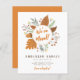 Verkünden Sie Ihre neue Zuhause oder Adresse auf einem Erntedank Party oder Abendessen mit dieser bewegenden Ankündigung mit einem Kranz von Erntedank-Elementen aus Herbst und Herbstlaub.