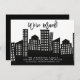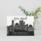 Moderne Ankündigung für eine neue Wohnung mit Stadtlandschaft mit Gebäude.
