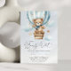 Baby Junge blau Blumenmotiv einfache Skriptschrift, können wir frühzeitig warten Baby Dusche Einladung Vorlage. Text und Farben können bearbeitet werden.
