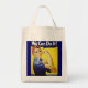 Hier ist eine Bio Einkaufstüte mit einem Bild von Rosie, einer Kulturfigur der Vereinigten Staaten, die die amerikanischen Frauen repräsentiert, die während des Zweiten Weltkriegs in Fabriken arbeiteten, von denen viele in der Herstellung von Pflanze arbeiteten, die Munition und Kriegsmaterial produzierten.