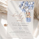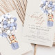 Wir können frühzeitig warten! :) Dieser kleine Bär ist für das große Baby-Party gewartet und sitzt in einem Heißluftballon aus blauen, braunen und cremefarbenen Ballons. Whimsikale Wasserfarben und moderne Typografie ergänzen das Design. Personalisieren Sie diese niedliche Bear Baby Shower Invitation mit Ihrem Baby Dusche Details einfach und schnell, drücken Sie die Taste, um es anzupassen, um weiter zu arrangieren, und formatieren Sie den Stil und die Platzierung des Textes.