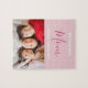 Wir Liebe Sie Mama Rosa Minimalistisches Foto Design. Süße, feminine, einfache, moderne und elegante Typografie. Text ist "Wir Liebe Sie", "Mama" und "Ihre Namen". Der gesamte Text kann leicht auf Ihre eigenen, schönen Nachrichten geändert werden. Fügen Sie Ihr eigenes Lieblings-Foto hinzu, um es unvergesslicher zu machen. Bestellen Sie noch heute dieses stilvolle Foto-Puzzle, um Ihre Liebe und dank Ihrer Ehefrau, Mama, Oma und den Müttern in Ihrem Leben zum Ausdruck zu bringen!