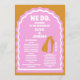 Unser minimaler Retro-Stil Hochzeitsservice-Programm ist perfekt für das trendige Ehepaar, das von Lieben stehend und kühn gesagt wird. Unser Design zeichnet sich durch eine fett leuchtend rosa-gelbe Farbkombination aus. Einfache abstrakte Bogenform und Kreisformen schaffen einen kühnen Look mit "We Do", der kühl in weißem, großen Schriftart angezeigt wird. Auf der Rückseite des Hauses befindet sich ein einfaches modernes Design mit einem fett gedruckten Monogramm und einer optionalen Adresse auf der Hochzeitswebsite