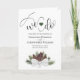 Machen Sie es Ihren Gästen leicht, mit der Zeremonie dieser schönen gefalteten Hochzeitsfeier mitzumachen. Das Design umfasst handbemalte Aquarellpinecone und Kiefernäste in Kastanienbraun- und Waldgrün-Tönen. Für die Titel gibt es eine moderne Schrift mit Raum für Details zur Zeremonie, zum Brautparty, zum Foto, einer Dankeschön-Notiz und einem kurzen Denkmal. Die Formulierung auf der Vorderseite lautet "Wir tun" mit einem niedlichen romantischen Herz zwischen den Buchstaben. Elegant und dennoch lustig, sind diese Programme perfekt für eine Winter- oder Bergzeremonie und eine wunderbare Ergänzung zu Ihrer Hochzeitsarbeit.
