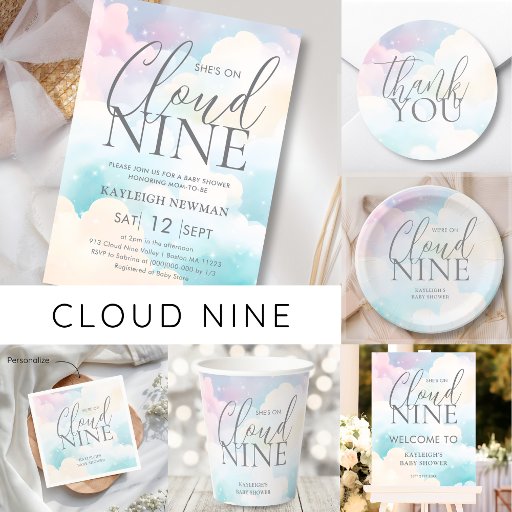 Wir sind auf Cloud Nine Baby Shower Budget Einladu