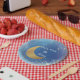 Wir sind über den Tellern der Mond-Kinderdusche Pappteller