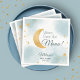 Wir sind Over the Moon Baby Dusche Thema-Servietten mit Gold Glitzer Halbmond mit passenden Sternen vor einem Aquarellblau und Weiß Hintergrund. Personalisieren mit Namen und Duschdatum. Entdecken Sie die passende Babydusche "Over the Moon", Party-Zubehör, Spiele und vieles mehr in unserer Kollektion auf dieser Seite für ein traumhaftes und zusammenhängendes Event!