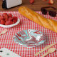 Wirbel aus aquamarinem, burgunischem, rotem und we pappteller