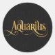 Wirbles Script Zodiac Sign Aquarius Gold auf schwa Runder Aufkleber
