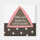 Ein lustiges Design mit einem schokoladenbraunen Dreieck mit rosa Rahmen. "Wird härter für Schokolade arbeiten" Eine Grenze von Schokolade mit weißen Polka Punkten betont den Boden des Designs.