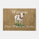 Willkommen, Bitte wischen Sie Ihren Hooves-Text mit einer Kuh auf einem rustikalen Schotteruntergrund.