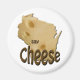 Eine grafische Wisconsin-Karte prägt Käse von Künstler/Designer Charmaine Paulson auf einem Magneten. Der Magnet hat den Text "Say Cheese". ©2012charmainepaulson. Bitte besuchen Sie meinen Shop für viele weitere Wisconsin Produkte!