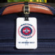 Personalisieren Sie das Monogramm vorne und Ihre Daten auf der Rückseite dieses Gepäckanhängers. Feiern Sie die Geschichte von Wisconsin mit diesem patriotischen Rundtypografie-Design. Mit dem Namen und den Schlüsselinformationen des Staat, wie Hauptstadt, Region, Spitzname für seine Bewohner, Zeitzone und geografische Koordinaten. Es ist eine großartige Möglichkeit, Ihren Stolz und Ihre Wertschätzung für den Staat zu zeigen. Ideal für Souvenirs oder Geschenke.