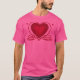 A large red heart is centered on a pink background, flanked by two smaller hearts and stylized eyes containing heart shapes. The design incorporates symmetry and a romantic theme with a bold color palette.