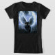 T - Shirt mit Wise One Fairy Cat von Michaeline McDonald von einer schwarzen Katze mit leuchtenden blauen und schwarzen Flügeln gegen einen schwarzen Sternenhimmel.