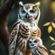 Wise white owl with baby sitting seidenpapier