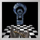 Schlüssel in menschlichen Händen. Mystische Schlupflöcher und Schachbrettboden