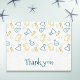 Schlichter wissenschaftlicher Dank an postcard für Ihre persönliche oder wissenschaftliche geschäftliche Nutzung. Es spricht für Biologie, Chemie, Physik, Medizin oder jedes andere wissenschaftliche Feld. Die Postkarte hat ein Muster von Laborgeräten wie Teströhren, Kolben und Glasgläser in schönen Gelb- und Blautönen. Um das Muster zu ergänzen, gibt es ein paar Moleküle in grauen Farben. Designed by Patricia Alvarez.