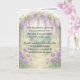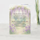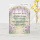 Ein zarter Bogen mit kaskadenförmigen Lavendel-Wisteria-Blume und Hydrangeas umrahmt einen ruhigen Gartenweg für ein 60-jähriges Jubiläum. Alle Texte können geändert werden.