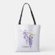 Hübsche botanische Aquarellmalerei mit lila Wisteria in voller Blüte mit Text auf weißem Hintergrund