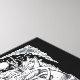 Hexen und Teufel, von Brian Benson. Das ist eine Tinte im B5-Format, die ich etwa 1994 gezeichnet habe. Der Titel stammt aus dem Namen eines Stückes von Albert Ayler. Das Bild zeigt ein Gesicht im Profil: Der Kopf enthält drei Hexen und mehrere monströse Gesichter.