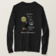 Kawaii Stil Cartoon Hand gezeichnet Hexe und schwarze Katze auf Besen mit Vollmond Happy Halloween Shirt.