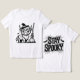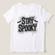 Zu Halloween verkleidete bezaubernde Hochlandkuh. Auf der Rückseite, Bleibe Spooky. Niedlicher Spaß, Halloween-T - Shirt.