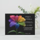 "Petals & Pride" is a luminous celebration of love, crafted for couples who want their wedding invitation to radiate joy, authenticity, and unapologetic color. Part of the Technicolor Love collection, this design centers around a breathtaking rainblo lily—its petals drenched in vibrant hues from ruby red to electric violet, kissed with dewdrops and set against a dramatic black canvas. The flower isn’t just beautiful—it’s symbolic, representing the full spectrum of love and the brilliance of shared commitment.