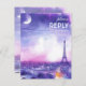 This two-sided RSVP card from the Amour Éternel à la Parisienne collection invites guests to respond with elegance and flair. The front features a dreamy Paris skyline bathed in moonlight, with the Eiffel Tower glowing against watercolor hues of lavender and blush. The reverse includes space for names, attendance, number of guests, special dietary notes, and a personal song request for the DJ—adding a joyful, interactive touch to your celebration. All text is fully customizable, making this card a poetic blend of romance and thoughtful planning.