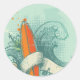 Grafische Abbildung eines Surfbrettes und Meereswellen mit verwittertem Design