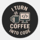 Funny I Turn Coffee in Code Classic Round Sticker - Funny Programmer T-Shirt for Coders & Developers Sind Sie Programmierer, die auf Kaffee und Code leben ☕ Dieser Spaß "I Turn Coffee Into Code" Tumbler ist perfekt für Entwickler, Programmierer und Software-Geeks. Mache für die, die Koffein und Liebe beherrschen - bekomme heute deinen und zeige deine Leidenschaft für das Programmieren!
